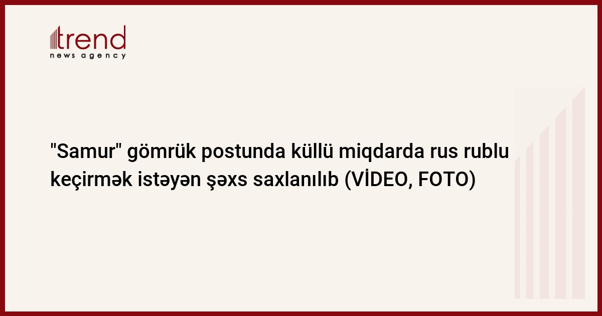 Yoxlama zamanı avtomobilin kabinindəki qəhvəyi rəngli çantanın içərisindən gömrük nəzarətinə bəyan edilməyən 4200 ədəd 5000-lik, 8953 ədəd 1000-lik və 54 ədəd 500-lük əskinaslardan ibarət ümumilikdə 29 milyon 980 min Rus rublu aşkar edilib.