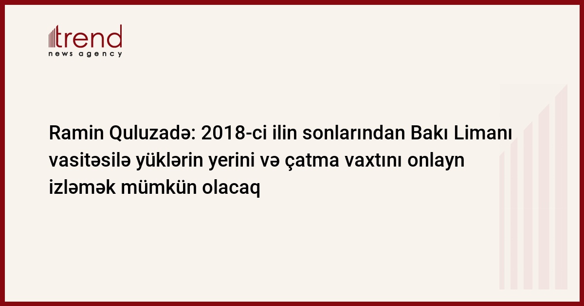 2018-ci ilin sonlarından Bakı Limanı vasitəsilə yüklərin yerini və çatma vaxtını onlayn izləmək mümkün olacaq.