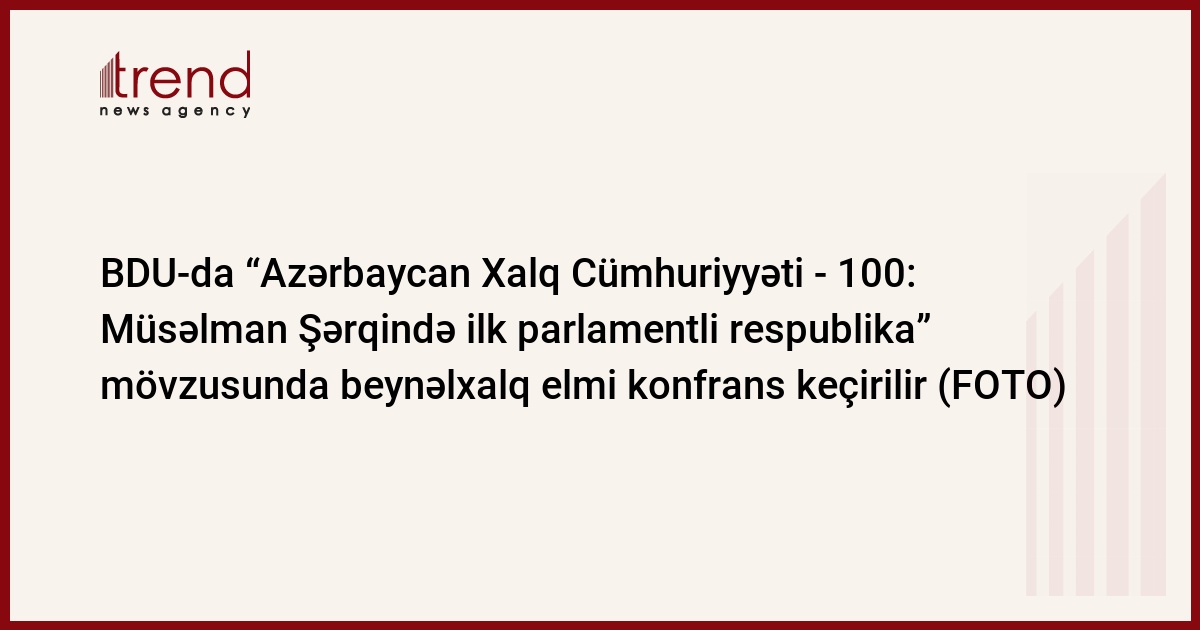 Bakı Dövlət Universitetində Qafqaz Müsəlmanları İdarəsi ilə birgə təşkil olunan “Azərbaycan Xalq Cümhuriyyəti - 100: Müsəlman Şərqində ilk parlamentli respublika” mövzusunda beynəlxalq elmi konfrans öz işinə başlayıb.