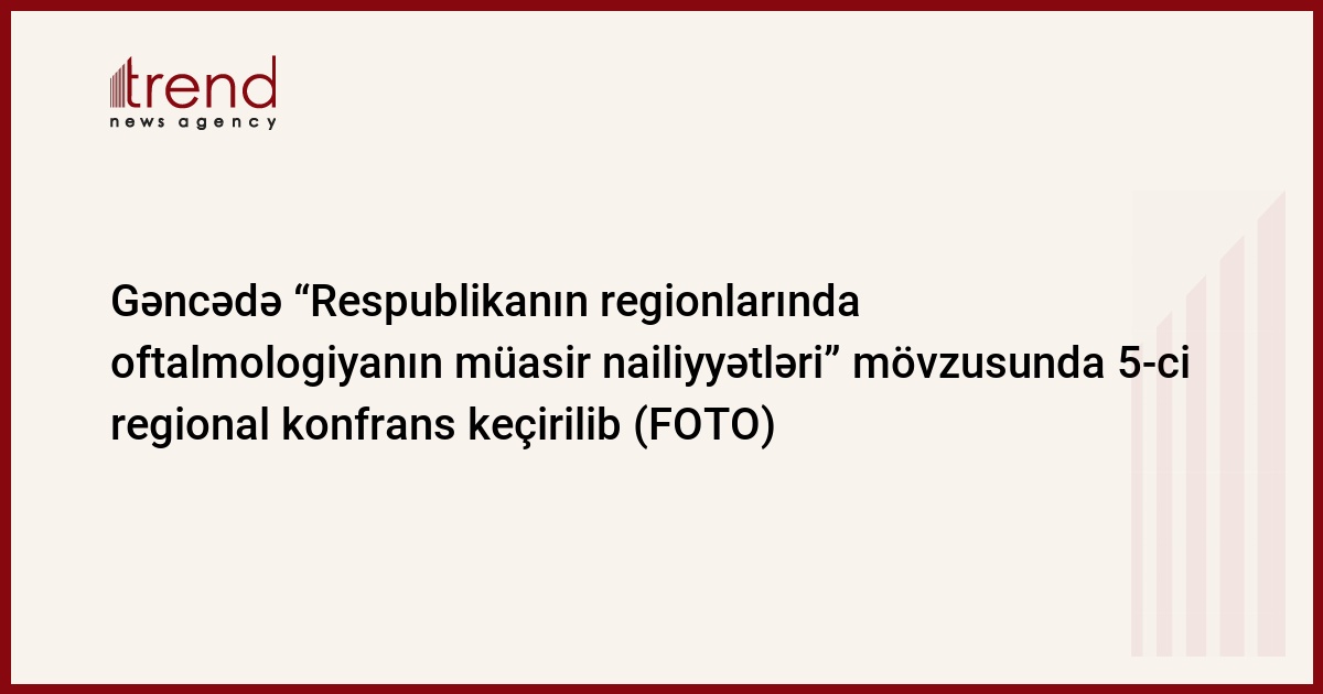 Bu gün Səhiyyə Nazirliyi, Akademik Zərifə Əliyeva adına Milli Oftalmologiya Mərkəzi və Azərbaycan Oftalmoloqlar Cəmiyyətinin təşəbbüsü ilə Gəncə şəhərində “Respublikanın regionlarında oftalmologiyanın müasir nailiyyətləri” mövzusunda 5-ci regional konfrans keçirilib.