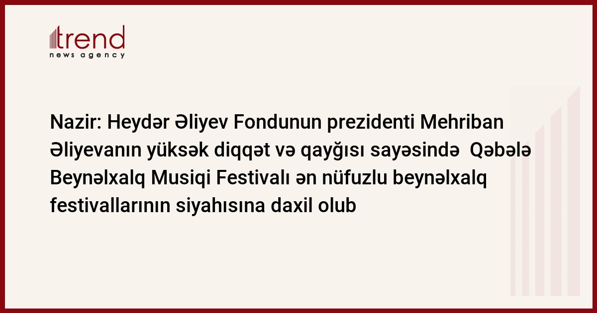 Qəbələ Beynəlxalq Musiqi Festivalı, Heydər Əliyev Fondunun prezidenti Mehriban Əliyevanın yüksək diqqət və qayğısı sayəsində ən nüfuzlu beynəlxalq festivalların siyahısına daxil olub.