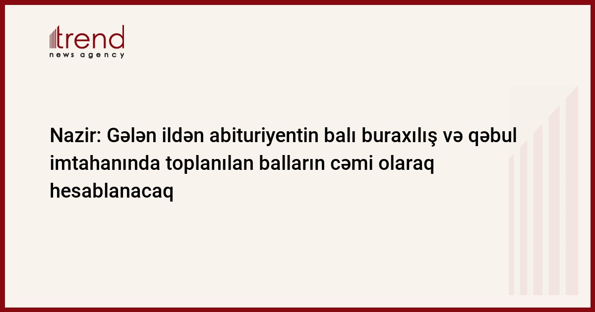 Bu tədris ilində XI sinfi bitirən ali təhsil müəssisələrinə qəbul zamanı abituriyentin balı buraxılış imtahanı və qəbul imtahanında topladığı balların cəmi olaraq hesablanacaq.