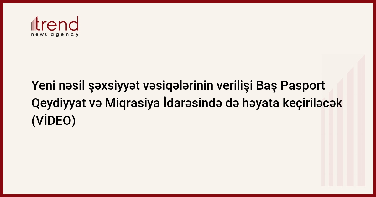 Sentyabrın 14-dən etibarən yeni nəsil şəxsiyyət vəsiqələrinin verilişi ərazi üzrə polis orqanlarının qeydiyyat və şəxsiyyət vəsiqəsi xidmətləri ilə yanaşı, Daxili İşlər Nazirliyinin Baş Pasport Qeydiyyat və Miqrasiya İdarəsində də həyata keçiriləcək.