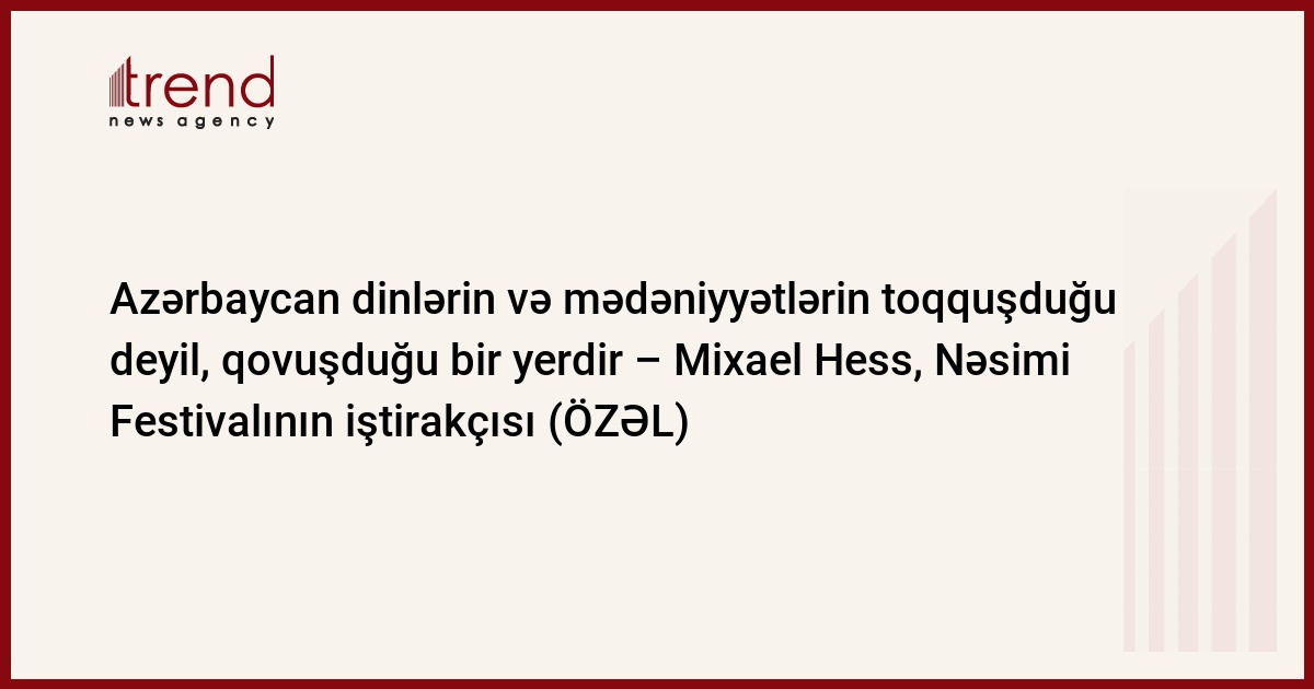 Festival ərəfəsində Trend-in oxucularına alman alimi ilə müsahibəni təqdim edirik. Almaniyalı Nəsimişünas nəinki Azərbaycanın vurğunu, eləcə də ölkəmizlə bağlı tarix, mədəniyyət və ədəbiyyat sahəsindəki məlumat və yeniliklərin təbliğatçısıdır. Bununla yanaşı, dilimizdə səlis danışa bilir.
