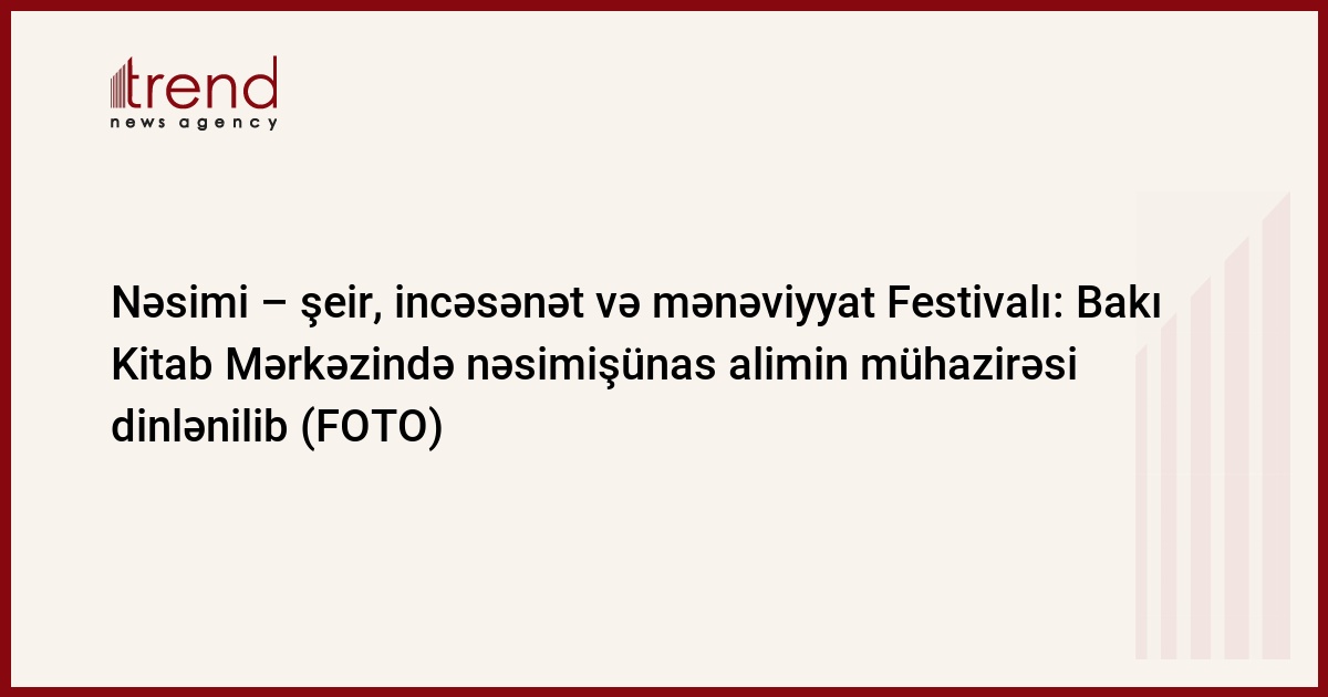 Nəsimi – şeir, incəsənət və mənəviyyat Festivalı çərçivəsində sentyabrın 29-da Bakı Kitab Mərkəzində nəsimişünas Səadət Şıxıyevanın mühazirəsi dinlənilib.
