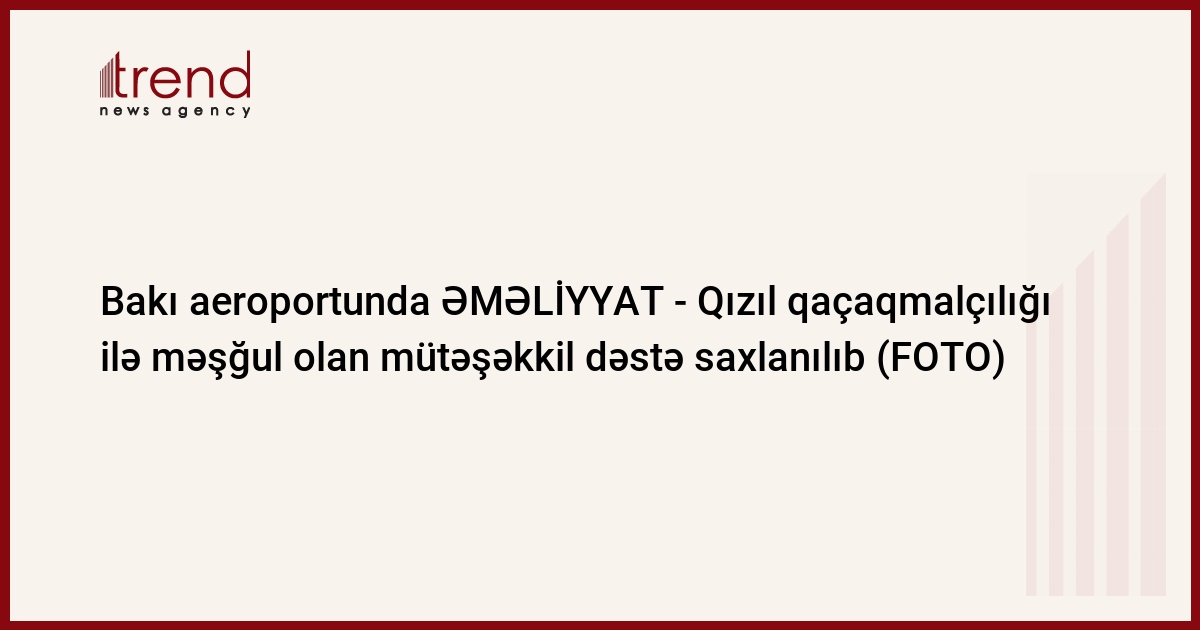 Trend-ə Dövlət Sərhəd Xidmətinin Mətbuat Mərkəzindən verilən məlumata görə, noyabrın 1-də Heydər Əliyev Beynəlxalq Aeroportunda “Bakı-Daşkənd” aviareysinin rəsmiləşdirilməsi zamanı Dövlət Sərhəd Xidmətinin Dövlət Gömrük Komitəsinin əməkdaşları ilə birgə həyata keçirdiyi əməliyyat-axtarış tədbiri nəticəsində gömrük və sərhəd nəzarətindən gizlin şəkildə, mütəşəkkil dəstə tərəfindən külli miqdarda qiymətli daş-qaş və qızıl-zinət əşyalarının dövlət sərhədindən qanunsuz keçirilməsinin qarşısı alınıb.