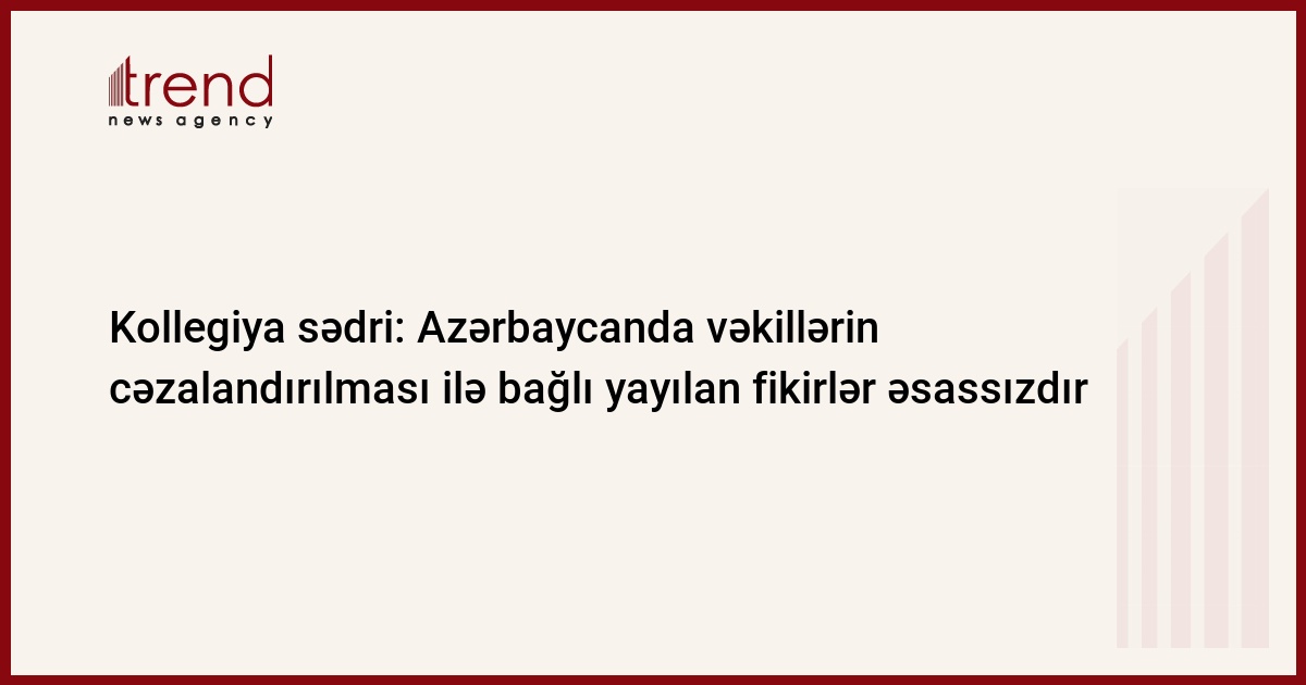 Kollegiya sədri qeyd edib ki, Azərbaycanda vəkillərin cəzalandırılması ilə bağlı yayılan fikirlər əsassızdır: "Bunlar dedi-qodudan başqa bir şey deyil".