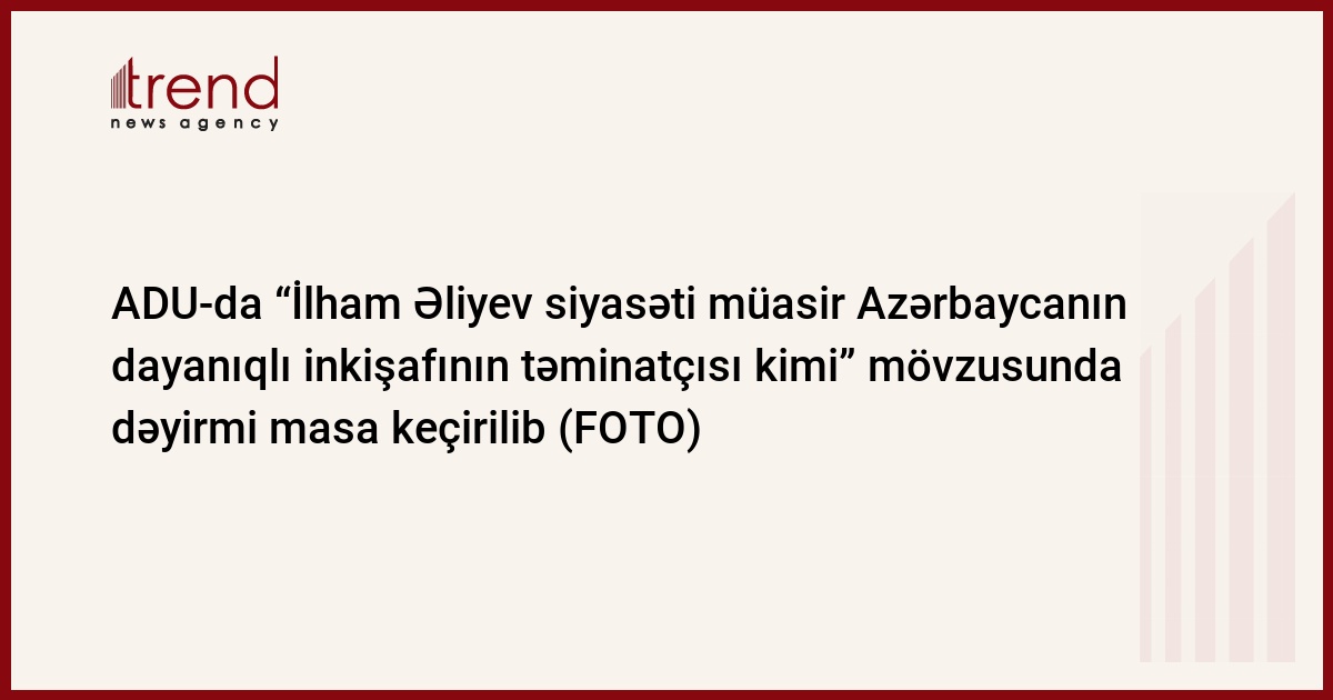 Azərbaycan Dillər Universitetində (ADU) “İlham Əliyev siyasəti müasir Azərbaycanın dayanıqlı inkişafının təminatçısı kimi” mövzusunda dəyirmi masa keçirilib.