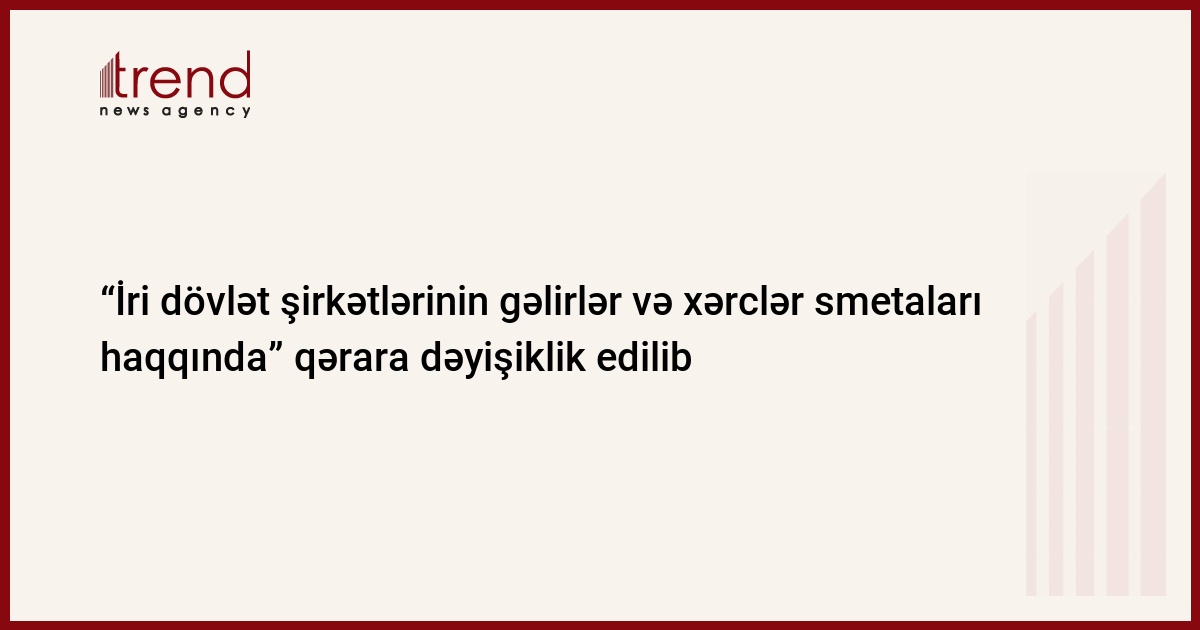 Nazirlər Kabineti “İri dövlət şirkətlərinin gəlirlər və xərclər smetaları haqqında” qərara dəyişiklik edib.