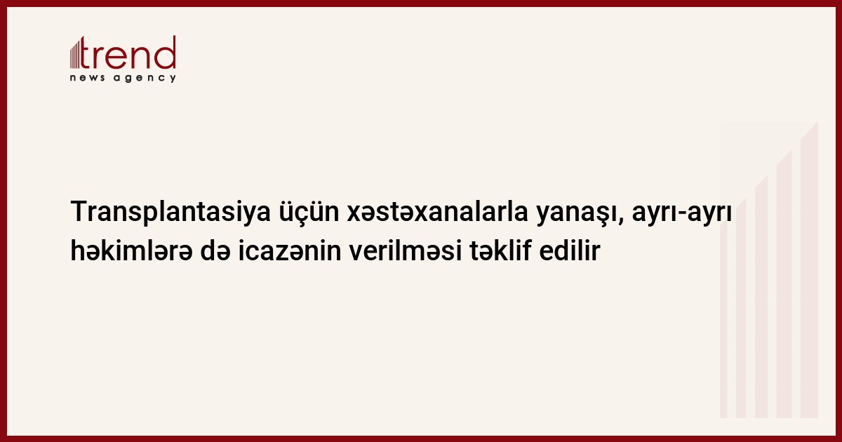 Azərbaycanda orqan transplantasiyasının aparılması üçün dövlət tərəfindən icazənin yalnız xəstəxanalara deyil, ayrı-ayrı həkimlərə də verilməsi təklif edilir.