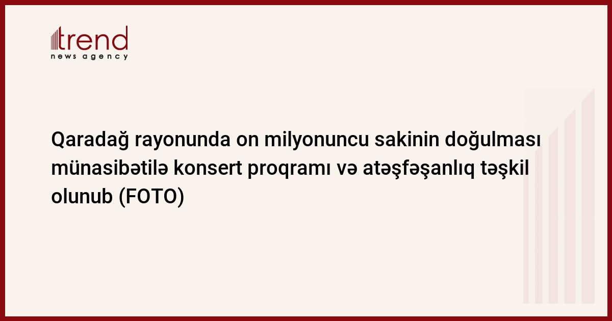 Axşam saatlarında isə Azərbaycanın 10 milyonuncu sakinin dünyaya gəlməsi münasibətilə Qaradağ rayonunda konsert proqramı təşkil edilib.