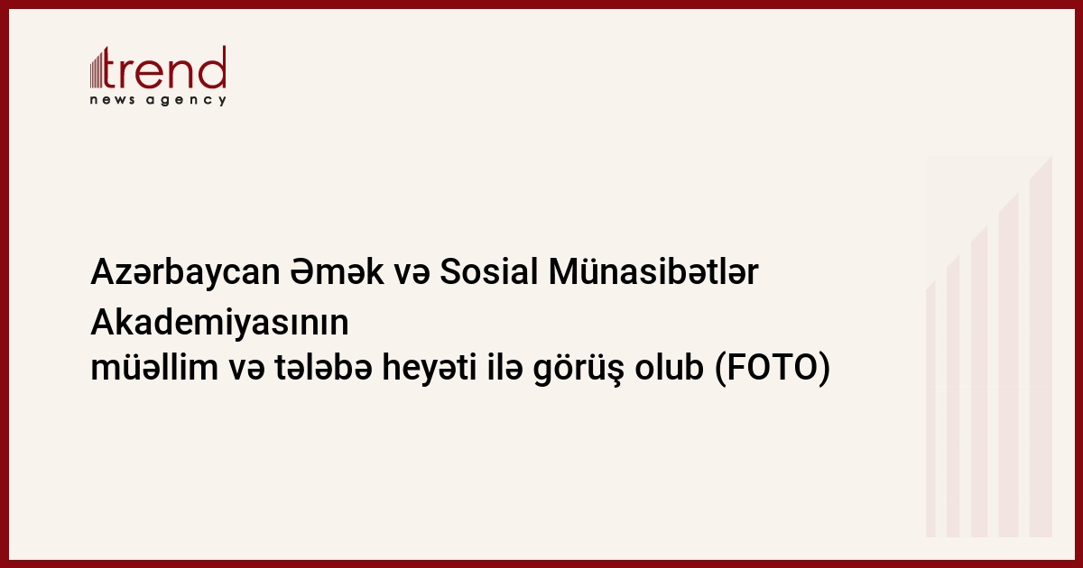 Trend-in məlumatına görə, bunu Əmək və Əhalinin Sosial Müdafiəsi naziri Sahil Babayev həmin Akademiyanın müəllim və tələbə heyəti ilə görüşdə bildirib.