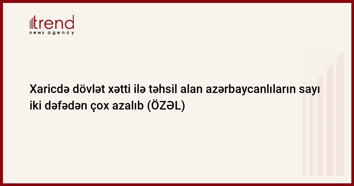 Trend-in məlumatına görə, 2013-2014-cü tədris ilində xaricdə Azərbaycan vətəndaşı olan 3035 tələbə dövlət xətti ilə təhsil aldığı halda, 2017-2018-ci ildə bu rəqəm 1800-ə, 2018-2019-cu tədris ilində isə bu say daha da azalaraq 751-ə enib.