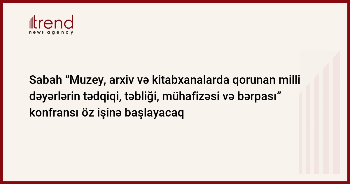 Sabah AMEA Milli Azərbaycan Tarixi Muzeyində “Muzey, arxiv və kitabxanalarda qorunan milli dəyərlərin tədqiqi, təbliği, mühafizəsi və bərpası” mövzusunda III respublika elmi konfransı keçiriləcək.