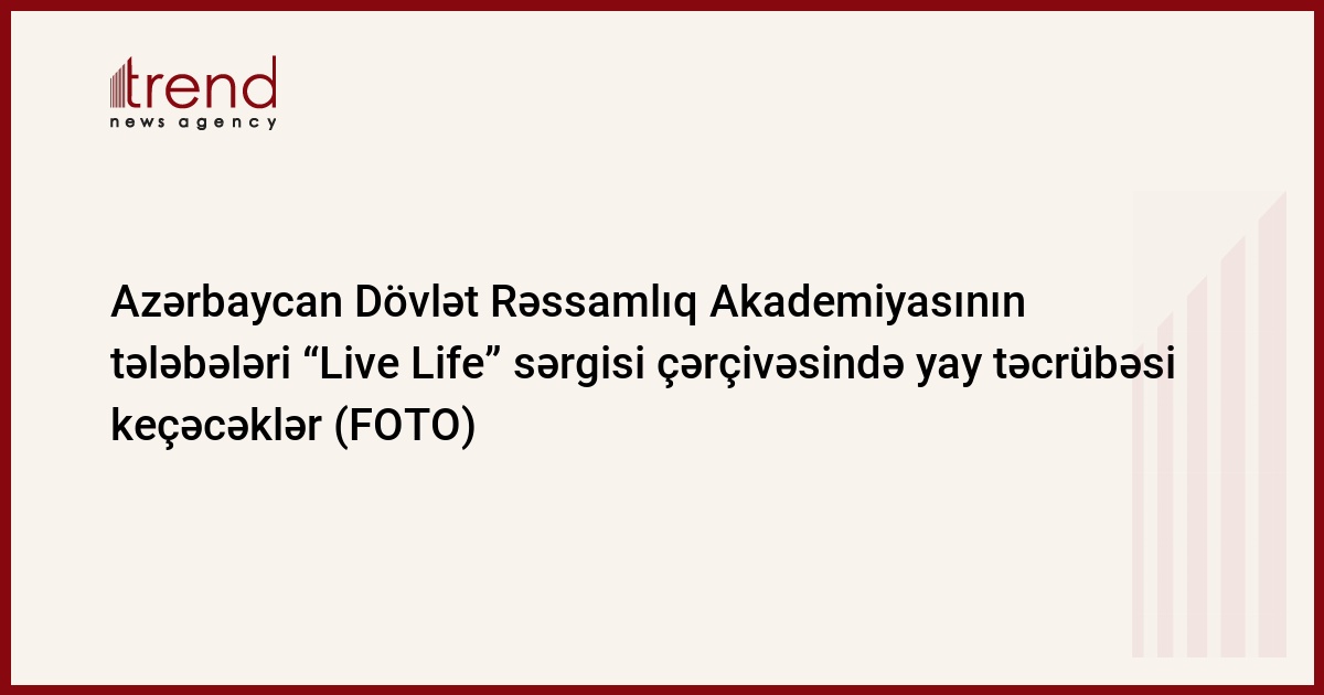 Heydər Əliyev Fondunun vitse-prezidenti, IDEA (Ətraf Mühitin Mühafizəsi Naminə Beynəlxalq Dialoq) İctimai Birliyinin təsisçisi və rəhbəri Leyla Əliyevanın təşəbbüsü ilə təşkil edilmiş “Live Life” beynəlxalq sərgi layihəsi çərçivəsində Azərbaycan Dövlət Rəssamlıq Akademiyasının fərqlənmiş 30 tələbəsi iyulun 2-dən 6-dək Heydər Əliyev Mərkəzində yay təcrübəsi keçəcək.