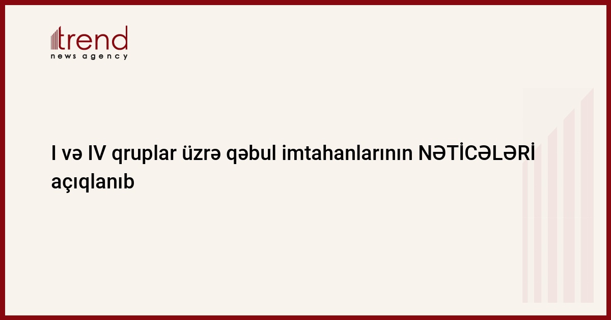 Dövlət İmtahan Mərkəzi (DİM) I və IV ixtisas qrupları üzrə iyunun 23-də keçirilən qəbul imtahanlarının nəticələrini elan edib.