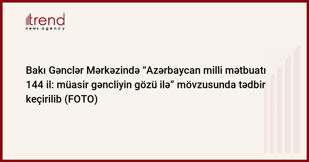 İyulun 19-da Azərbaycan Respublikasının Gənclər Fondu, Bakı Gənclər Mərkəzinin birgə təşkilatçılığı ilə universitet tələbələri, gənclər təşkilatlarının nümayəndələri və gənc könüllülərin iştirakı ilə Bakı Gənclər Mərkəzində “Azərbaycan milli mətbuatı 144 il: müasir gəncliyin gözü ilə” mövzusunda tədbir keçirilib.