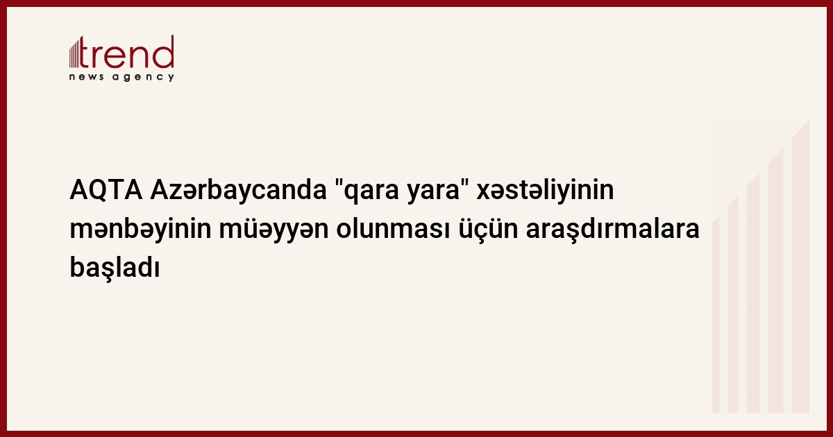 Azərbaycan Qida Təhlükəsizliyi Agentliyi (AQTA) Sabirabadda iki şəxsin "qara yara" xəstəliyinə yoluxmasının səbəblərinin öyrənilməsi məqsədilə araşdırmalara başlayıb.