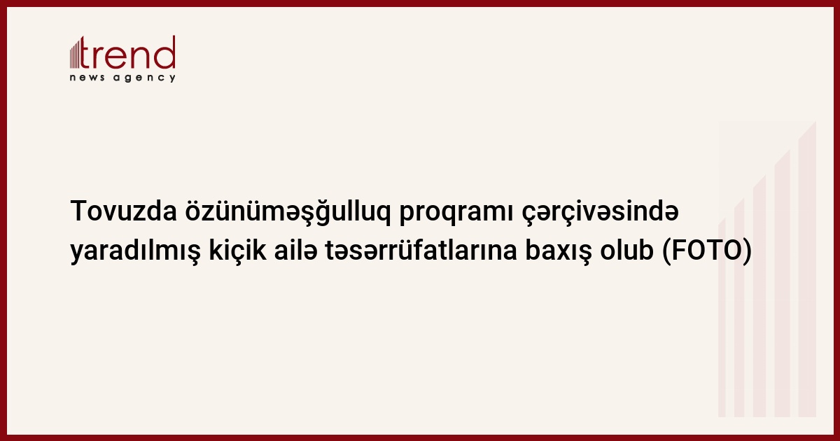 Nazirlikdən Trend-ə verilən məlumata görə, ötən il Tovuz rayonunda 178 ailə özünüməşğulluq proqramına cəlb edilib.