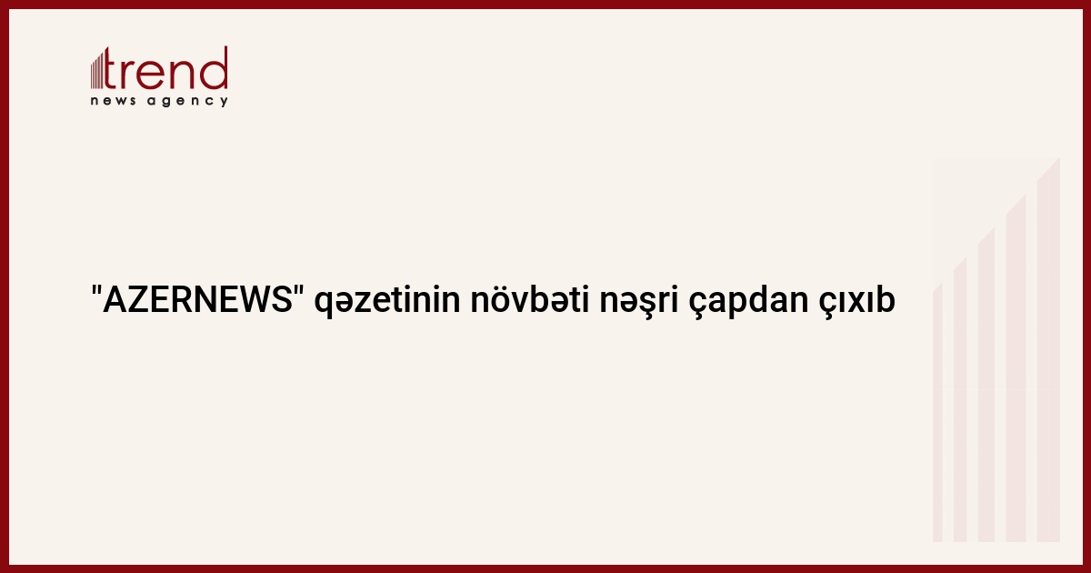 Sentyabr ayının 5-də "AZERNEWS" onlayn qəzetinin növbəti nəşri çapdan çıxıb.