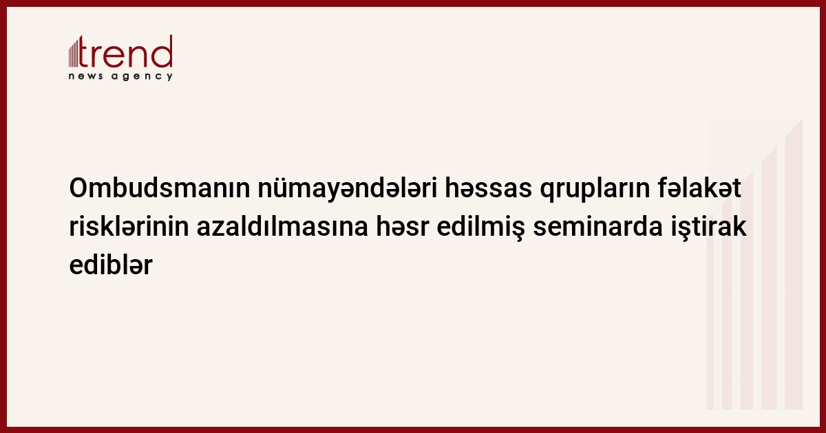 Trend-in məlumatına görə, Fövqəladə Hallar nazirinin müavini Etibar Mirzəyevin, EUR-OPA-nın icraçı katibi Gianluca Silvestrininin, UNİCEF-in Azərbaycandakı nümayəndəliyinin rəhbəri Edvard Karvardinin, BMqT-in Azərbaycandakı nümayəndəliyinin rəhbəri Vladimir Georgiyevin iştirak etdiyi həmin seminarda Ombudsman Aparatının əməkdaşları Müqalib Mahmudov və Turan Cahangirova iştirak ediblər.