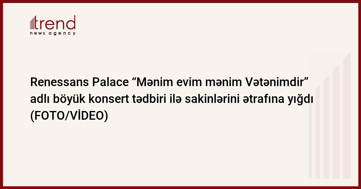 “Renessans Palace” Premium Yaşayış Kompleksi möhtəşəm “Mənim evim,… mənim Vətənimdir” tədbirlə sakinlərinin ixtiyarına verildi. Kompleksin geniş həyətində keçirilən konsertdə Azərbaycanın ziyalıları, tanınmış memarları media və mədəniyyət simaları iştirak edərək “Renessans Palace”ın memari özəllikləri, şəhərə qatdığı əlavə gözəllik barədə öz müsbət fikirlərini bildiriblər.
