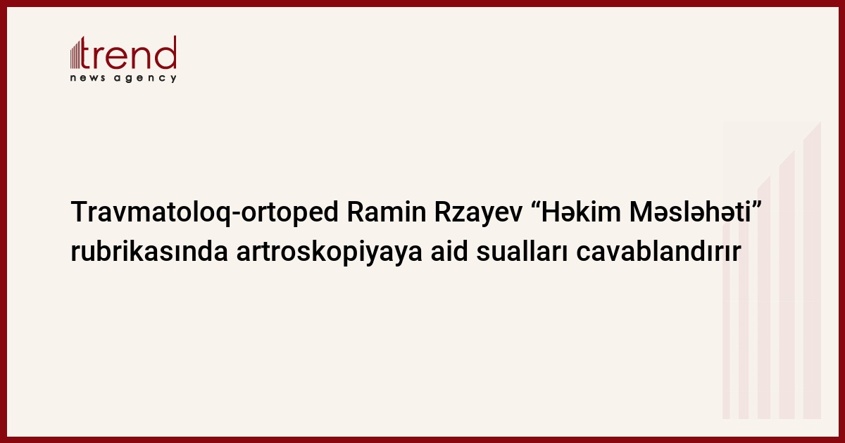 Mərkəzi Gömrük Hospitalının Travmatologiya və Ortopediya şöbəsinin rəisi, t.f.d., travmatoloq-ortoped Ramin Rzayev “Həkim Məsləhəti” rubrikasında artroskopiyaya aid sualları cavablandırır.