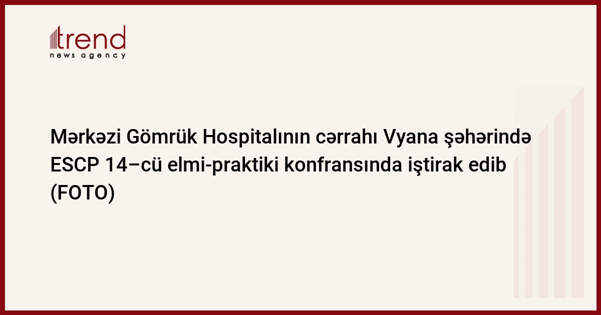 Mərkəzi Gömrük Hospitalının ümumi cərrahı, tibb üzrə fəlsəfə doktoru Aynur Səfiyeva 24-27 sentyabr 2019-cu il tarixlərində Avstriyanın Vyana şəhərində keçirilən Avropa Koloproktoloqlar Dərnəyinin (ESCP) XIV elmi-praktiki konfransında iştirak edib. 24 sentyabr tarixində milli təmsilçilər dəyirmi masa arxasında keçirilən toplantıda gördükləri işlər haqqında geniş məlumat veriblər, həmçinin, onların arzu və iradları dinlənilib. Sevindirici haldır ki, Azərbaycan təmsilçilərinin hesabatı məqbul hesab edilərək qəbul edilib.