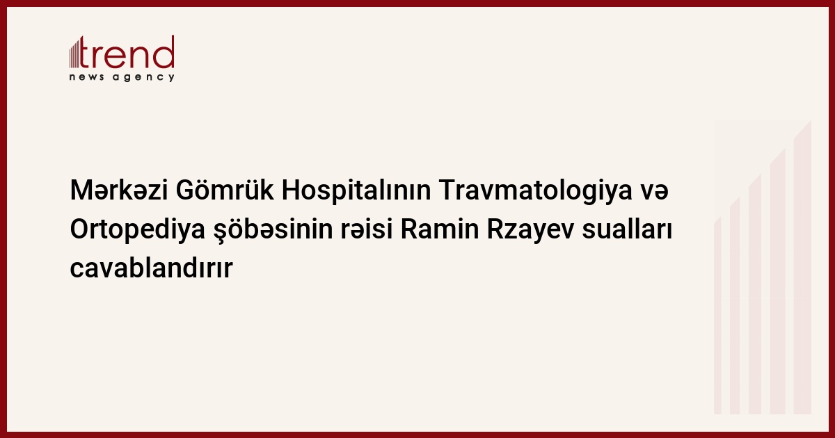 Mərkəzi Gömrük Hospitalının Travmatologiya və Ortopediya şöbəsinin rəisi, t.f.d., travmatoloq-ortoped Ramin Rzayev “Həkim Məsləhəti” rubrikasında artroskopiyaya aid sualları cavablandırır.