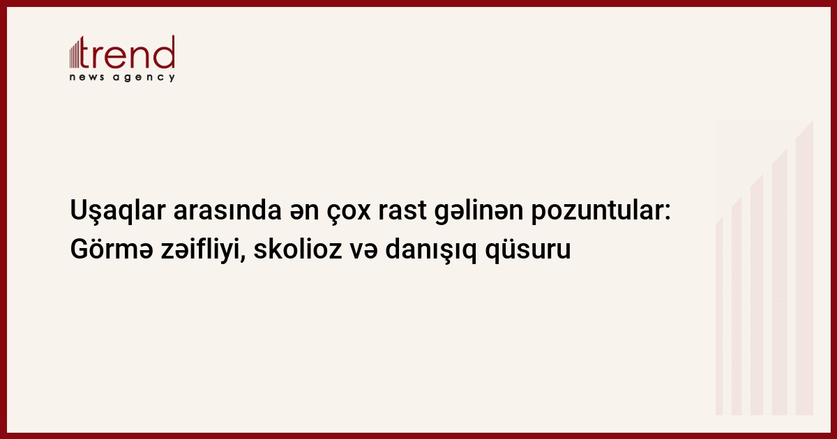Azərbaycanda son illər ərzində uşaqların profilaktik müayinəsi aparılarkən onlarda daha çox görmə qabiliyyətinin zəifləməsi, danışığında qüsurun olması, onurğa sütununda skoliozun aşkarlanması ilə bağlı problemlər aşkarlanır.