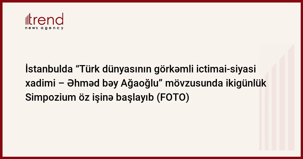 Böyük mütəfəkkir Əhməd bəy Ağaoğlunun 150 illik yubileyi ilə əlaqədar olaraq, Azərbaycan İlahiyyat İnstitutu (Aİİ), İstanbul Universiteti Türkiyat Araşdırmaları İnstitutu, Türk Əməkdaşlıq və Koordinasiya Agentliyi (TİKA), Türk Ocaqları İstanbul şöbəsinin birgə təşkilatçılığı ilə Türkiyə Respublikasının İstanbul şəhərində “Türk dünyasının görkəmli ictimai-siyasi xadimi – Əhməd bəy Ağaoğlu” mövzusunda ikigünlük Simpozium öz işinə başlayıb.