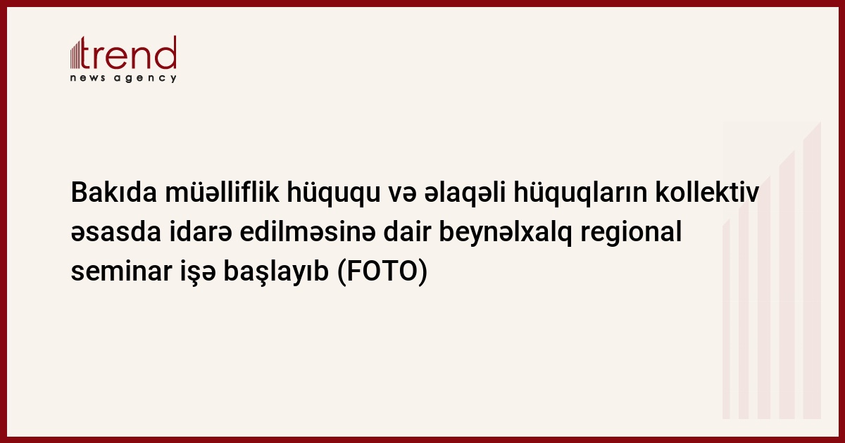 Azərbaycan Respublikasının Əqli Mülkiyyət Agentliyi və Ümumdünya Əqli Mülkiyyət Təşkilatının (ÜƏMT) Bakıda keçirdiyi "Müəlliflik hüququ və əlaqəli hüquqların kollektiv əsasda idarə edilməsi: əsas prinsiplər və beynəlxalq təcrübə" mövzusunda beynəlxalq regional seminar işə başlayıb.
