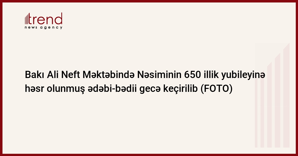 Bütün bunları və dövlət başçısının İmadəddin Nəsiminin yubileyinin keçirilməsi haqqında sərəncamlarını rəhbər tutaraq Bakı Ali Neft Məktəbi tərəfindən Azərbaycan Dövlət Mədəniyyət və İncəsənət Universiteti ilə birgə Nəsiminin 650 illik yubileyinə həsr olunmuş ədəbi-bədii gecə keçirilib.