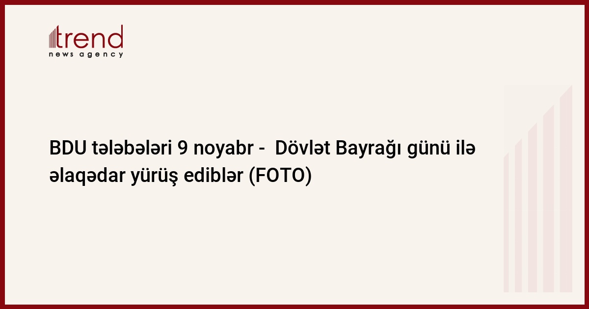 Bu gün Bakı Dövlət Universiteti Tələbə Gənclər Təşkilatının təşkilatçılığı ilə 9 noyabr - Dövlət Bayrağı günü ilə əlaqədar universitetin ərazisində yürüş keçirilib.Universitetin tələbələri şanlı tarix yolu keçmiş üçrəngli bayrağımız ilə universitetin həyətində yürüş ediblər.