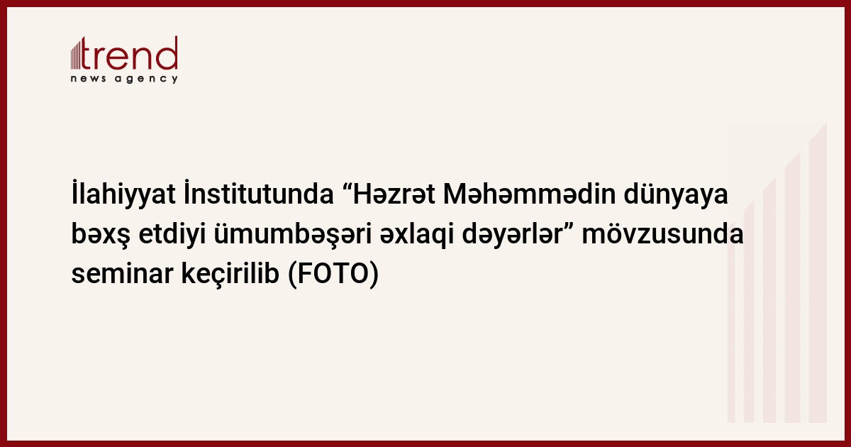 Azərbaycan İlahiyyat İnstitutunda (Aİİ) “Həzrət Məhəmmədin dünyaya bəxş etdiyi ümumbəşəri əxlaqi dəyərlər” mövzusunda seminar keçirilib.