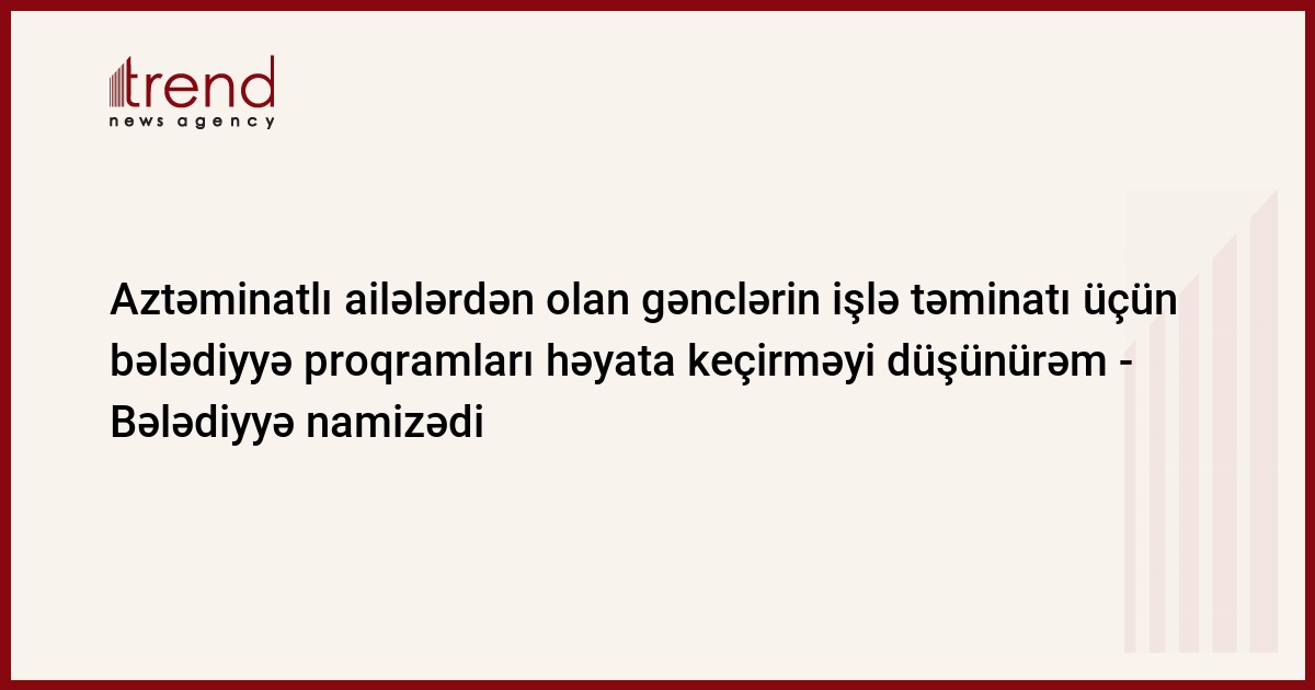 - Bələdiyyə seçkilərində bitərəf namizəd kimi iştirak edirəm. Namizədliyimi irəli sürmək qərarını özüm verdim. Bakalavr təhsilim sırf dövlət idarəçiliyi ilə bağlıdır və Bələdiyyə idarəetməsi mənə yad bir sahə deyil. Qərar verdim ki, doğulub böyüdüyüm Nərimanov rayonundan Bələdiyyə seçkisinə qatılım və bələdiyyəmizin, ümumilikdə rayonumuzun inkişafına öz dəstəyimi verim. Hal-hazırda ölkəmizdə gedən böyük islahatlar və gənclərə geniş imkanların yaradılması da məni bu qərarımı verməkdə bir qədər də ruhlandırdı. İnanıram ki, bu islahatlar, müsbət dəyişikliklər öz təsirini yerli idaraetmə orqanlarında da göstərəcək. Bu seçkilərdən sonra Bələdiyyələr daha aktiv fəaliyyət göstərəcəklər və təmsil etdikləri ərazinin, orda yaşayan insanların problemlərinin həllində iştirak edəcəklər. Hesab edirəm ki, Bələdiyyələr ərazilər üzrə sakinlərin problemlərinə ən yaxın orqan olmalıdır və qarşıya çıxan məsələlərin həllinə çalışmalıdırlar. Bunun üçün isə yеnilikçi düşüncəyə, gənclərə böyük ehtiyac var. Bələdiyyə üzvü seçiləcəyim təqdirdə, rayon sakinlərini narahat edən məsələlərin həllində bütün imkanlarımı səfərbər edəcəm.