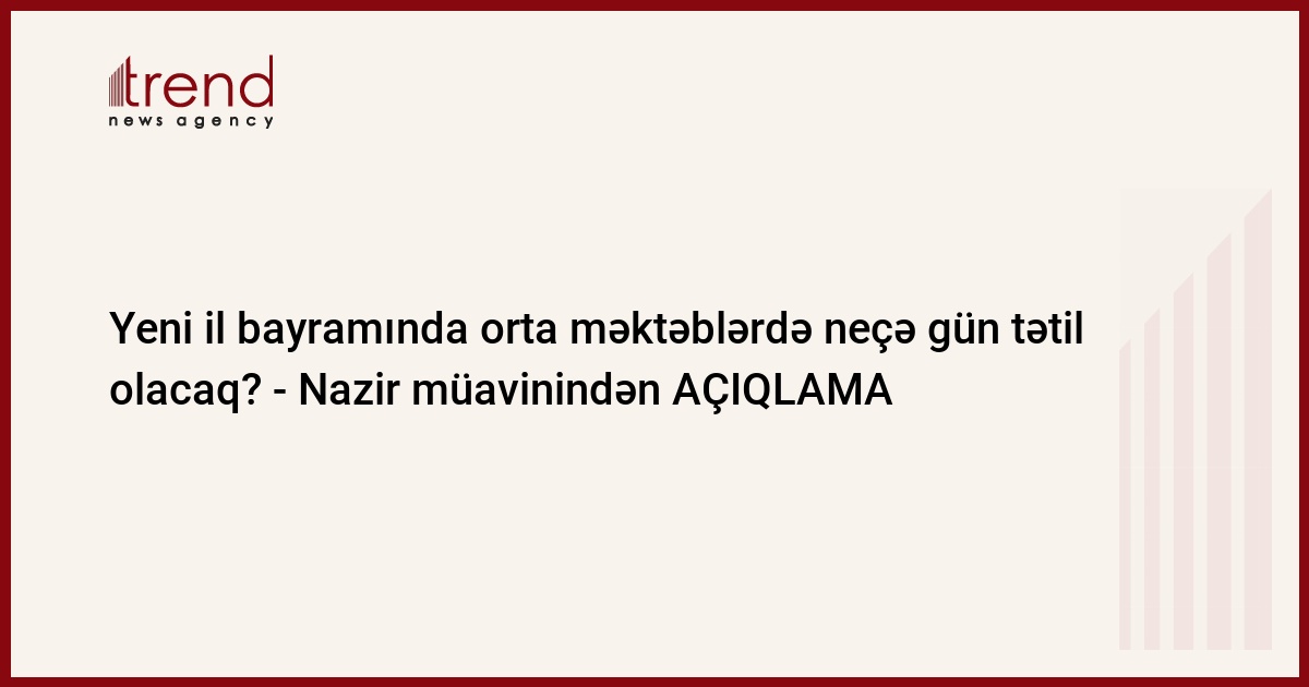 Yeni il bayramında tədirisi 5 və 6 günlük olan orta məktəblərdə neçə gün tətil olması hələ müəyyən edilməyib.