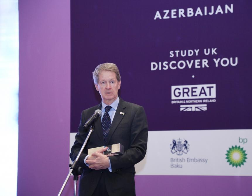 Britaniyanın Azərbaycandakı səfiri Ceyms Şarp tədbirdə çıxış edərək deyib ki, “Study UK” məzun mükafatlarının finalçılarını seçmək çox çətin idi. “Azərbaycanda Böyük Britaniyada təhsil almış və əldə etdikləri bilik və bacarıqlardan ölkələrinin inkişafını dəstəkləmək üçün istifadə edən bir çox istedadlı insan var. Onların hamısını alqışlayır və hər birinə böyük uğurlar arzulayıram”, - deyə o qeyd edib.