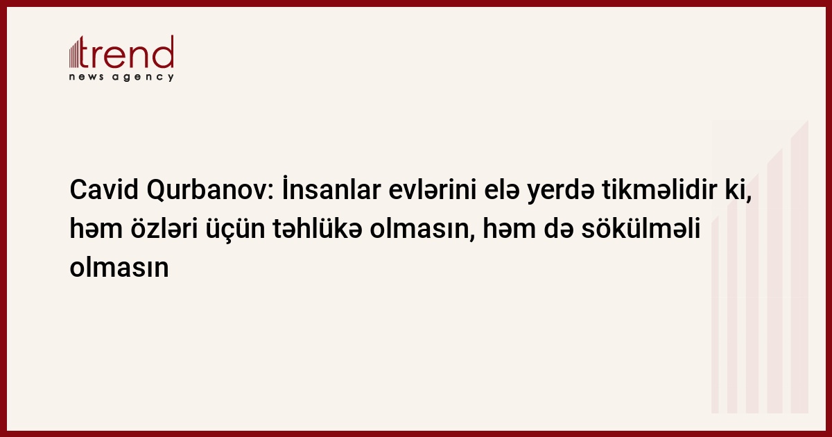 İnsanlar evlərin elə yerdə tikməlidir ki, həm özləri üçün təhlükə olmasın, həm də sökülməli olmasın.