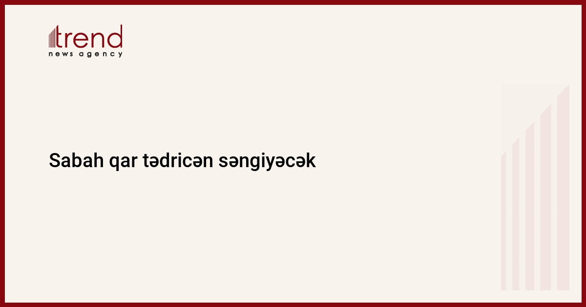 Azərbaycanın rayonlarında arabir qar yağacağı gözlənilir. Gündüz qərb rayonlarından başlayaraq yağıntılar tədricən kəsiləcək. Ayrı-ayrı yerlərdə duman olacaq. Qərb küləyinin sürəti 10-15 m/s, arabir 18-23 m/s, gecə və səhər ayrı-ayrı yerlərdə arabir 25-30 m/s-dək güclənəcəyi gözlənilir. Havanın temperaturu gecə 0-5° şaxta, gündüz 0-5° isti, dağlarda gecə 5-10°, yüksək dağlıq ərazilərdə 17-22° şaxta, gündüz 3-8° şaxta olacaq.