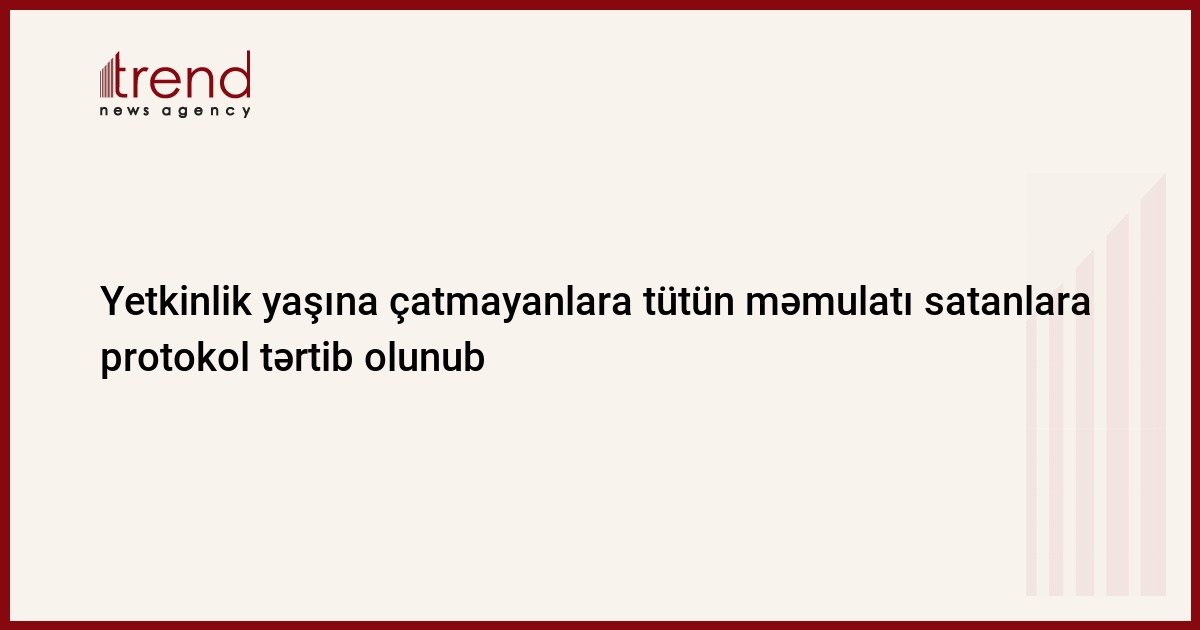 Daxili İşlər Nazirliyinin (DİN) Mətbuat xidmətindən Trend-ə verilən məlumata görə, DİN-in Baş İctimai Təhlükəsizlik İdarəsi və Nizami RPİ əməkdaşlarının rayon ərazisində keçirdikləri reydlər nəticəsində bir köşkdə və bir marketdə satıcıların yetkinlik yaşına çatmayanlara tütün məmulatı satması faktları aşkar edilib.