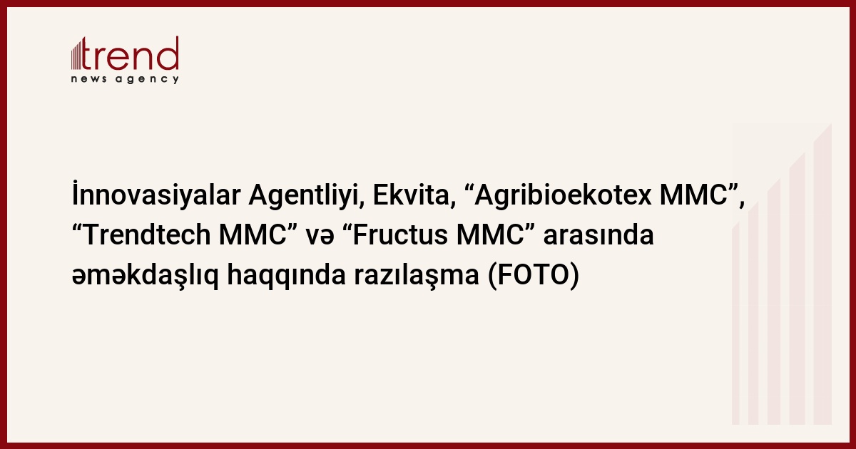 13 fevral 2020-ci il tarixində Azərbaycan Respublikasinin Nəqliyyat, Rabitə və Yüksək Texnologiyalar Nazirliyinin tabeliyində İnnovasiyalar Agentliyi, Ekvita, “Agribioekotex MMC”, “Trendtech MMC” və “Fructus MMC” arasında əməkdaşlıq haqqında razılaşma imzalanmışdır.
