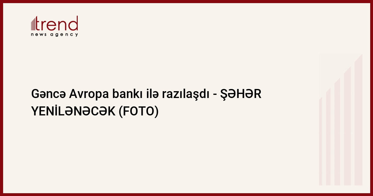 Avropa Yenidənqurma və İnkişaf Bankı (AYİB) və Azərbaycan Gəncənin şəhər layihələrinin işlənib hazırlanmasına dair razılığa gəlib.
