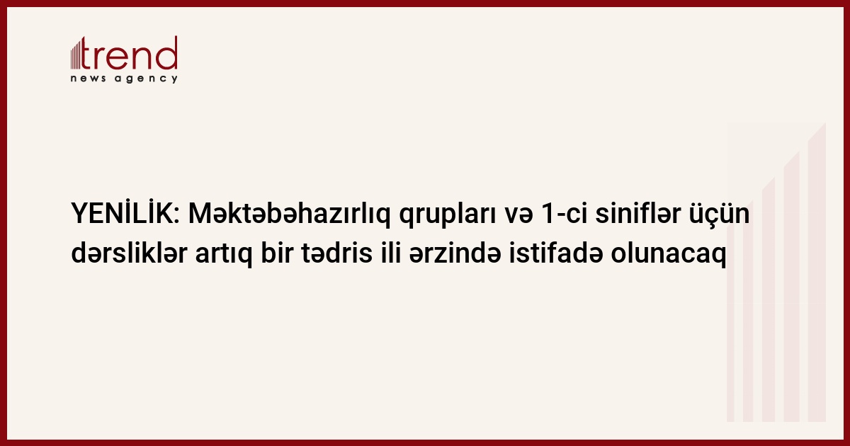 Dövlət ümumtəhsil məktəblərinin məktəbəhazırlıq qrupları və 1-ci sinifləri üçün istehsal olunan bütün kağız dərsliklər artıq 1 tədris ili ərzində istifadə olunacaq və hər il yeniləri ilə əvəzlənəcək.