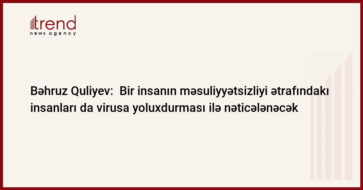 "Əlbəttə ki, vətəndaşlarımız da öz növbələrində xüsusi karantin rejiminə əməl etməlidirlər. Hər kəs həmrəylik göstərib tətbiq edilən qaydalara maksimum riayət etməyə borcludur. Bu, insanlarımızın sağlamlığı, virusdan qorunması üçün çox vacib amildir".