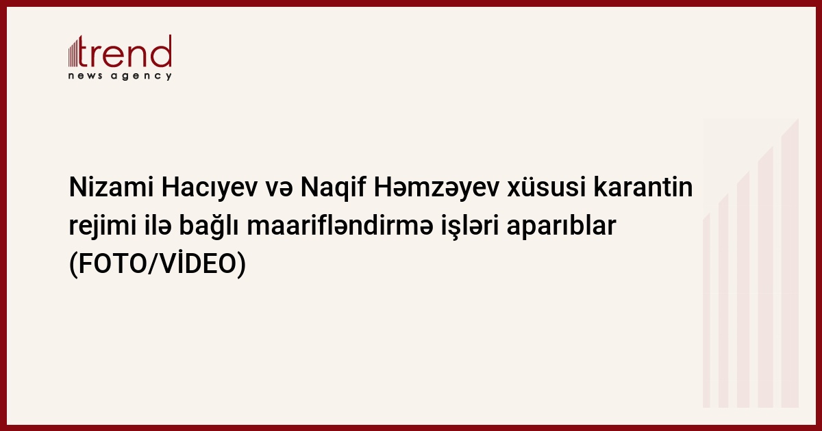 Trend-in məlumatına görə, Gəncə şəhər Nizami Rayon İcra Hakimiyyətinin başçısı Nizami Hacıyev, Milli Məclisin deputatı Naqif Həmzəyev və hüquq - mühafizə orqanlarının əməkdaşları xüsusi karantin rejiminin tədbiqi ilə əlaqədar olaraq Gəncənin Mahrasa bağı yaşayış massivində, M.C.Paşayev və Təbriz küçələrində olublar. Onlar bu ərazilərdə fəaliyyət göstərən ərzaq mağazalarındakı vəziyyətlə tanış olub, sahibkarlarla görüşüblər.