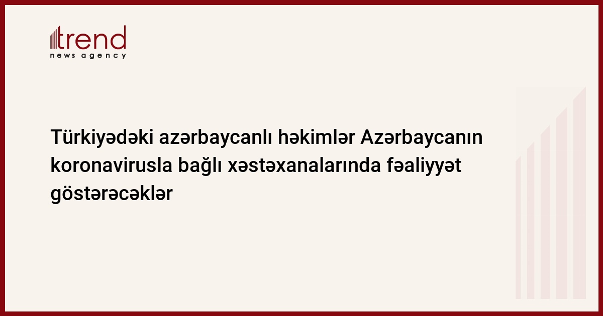 Türkiyədəki azərbaycanlı həkimlər Azərbaycanın koronavirusla bağlı xəstəxanalarında fəaliyyət göstərəcəklər.
