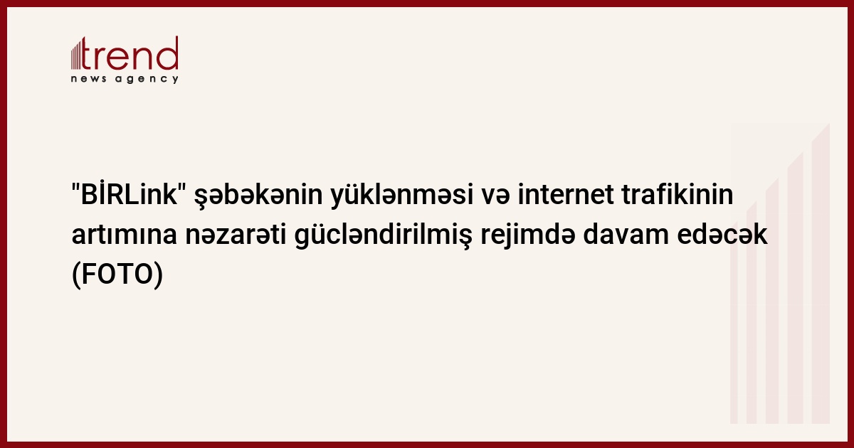 Kommunikasiya xidmətlərinin təminatçısı “BİRLink” uzadılmış xüsusi karantin rejimi dövründə şəbəkənin yüklənməsi və internet trafikinin artımına nəzarəti gücləndirilmiş şəkildə davam edəcək.