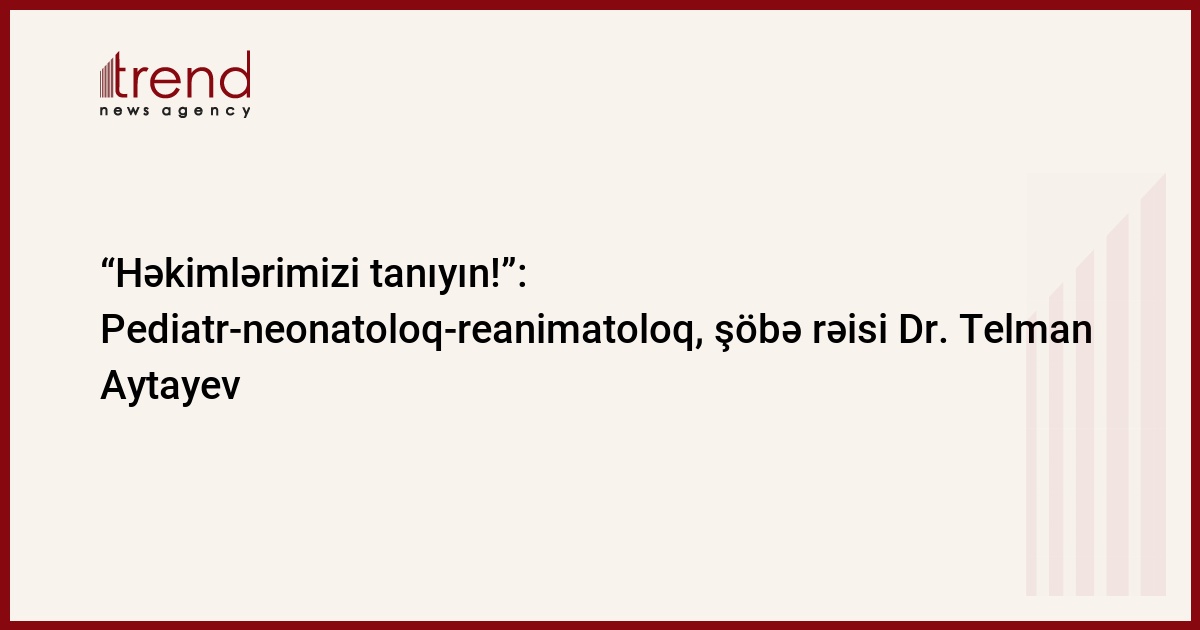 “Həkimlərimizi tanıyın!” rubrikamızda Sizlərə yüzlərlə uşağa sağlamlığını qaytarmış, mehriban, qayğıkeş və diqqətcil pediatr-neonatoloq-reanimatoloq, şöbə rəisi Dr. Telman Aytayevi təqdim edirik.