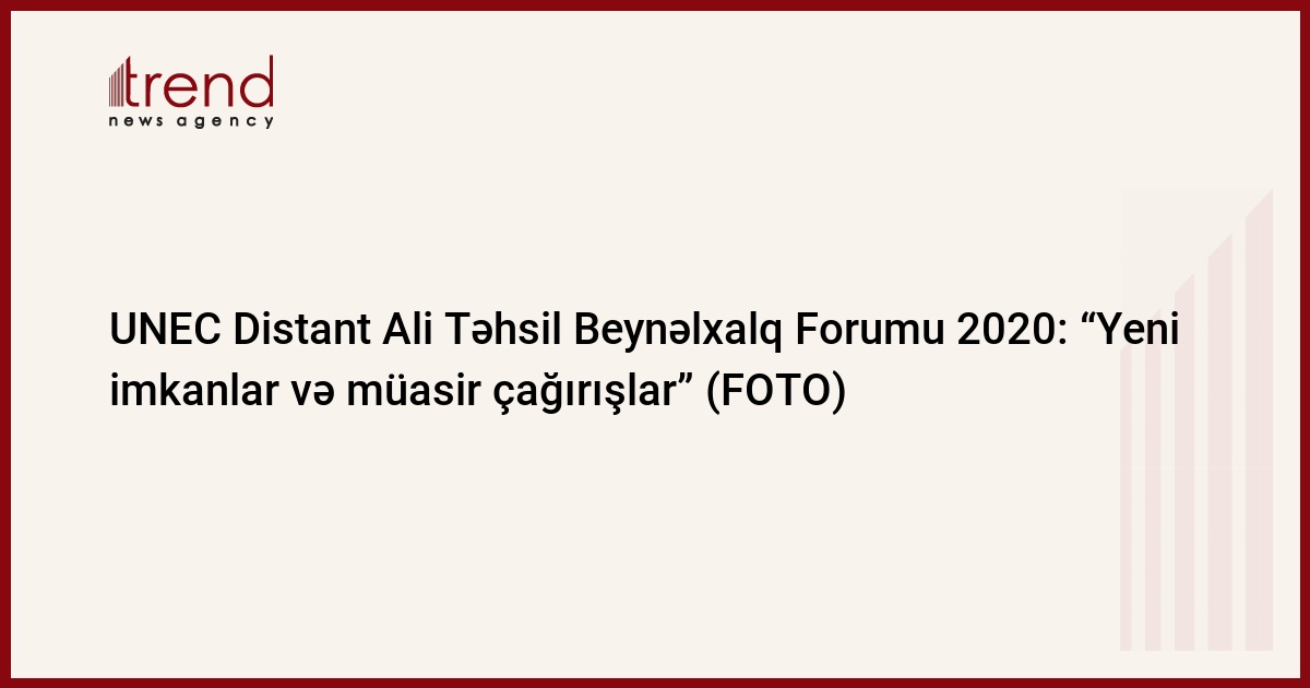 Azərbaycan Dövlət İqtisad Universitetində (UNEC) “Distant ali təhsil: Yeni imkanlar və müasir çağırışlar” mövzusunda UNEC Distant Ali Təhsil Beynəlxalq Forumu 2020 keçirilib.